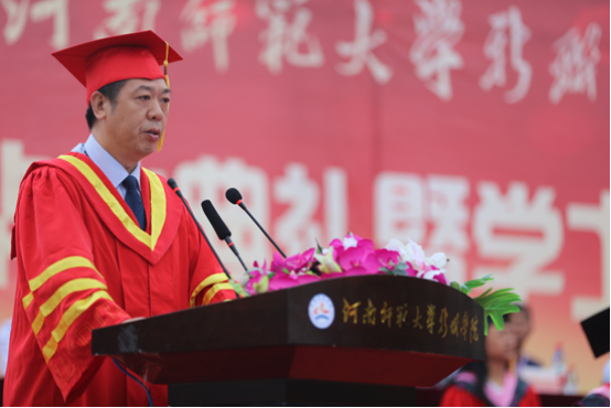 6月6日,河南师范大学新联学院2017届学生毕业典礼暨学士学位授予仪式隆重举行,新联学院理事长李香枝女士,学校党政领导、学位委员会专家、学校各部门负责人及部分教师代表与2017届毕业生共同参加。典礼由副校长郑敏主持。