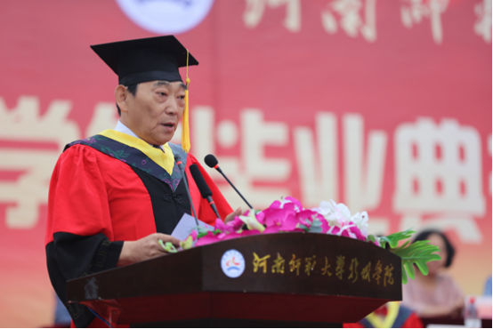 新联学院院长金绪泽教授向圆满完成学业的全体毕业生表示热烈的祝贺,向辛勤养育毕业生成长的父母、悉心教导毕业生成才的老师表示衷心的感谢。他寄语毕业生珍惜韶华,怀揣理想;珍惜责任,有所担当;珍惜拥有,永远幸福。