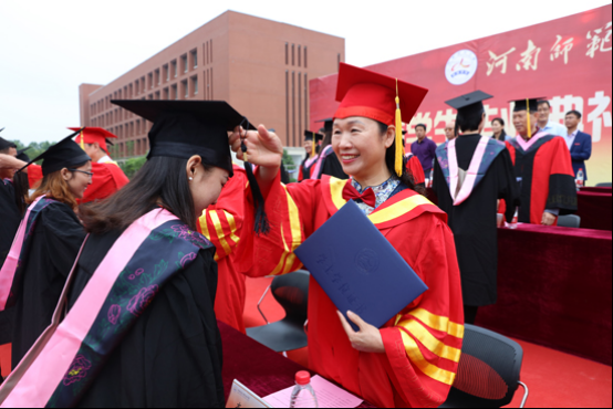 典礼仪式在雄壮的国歌声中拉开帷幕。副校长张雷顺宣读了《河南师范大学新联学院学士学位授予决定》,理事长李香枝女士和学校党政领导、学位委员会专家为毕业生代表颁发学位证书、拨苏正冠。