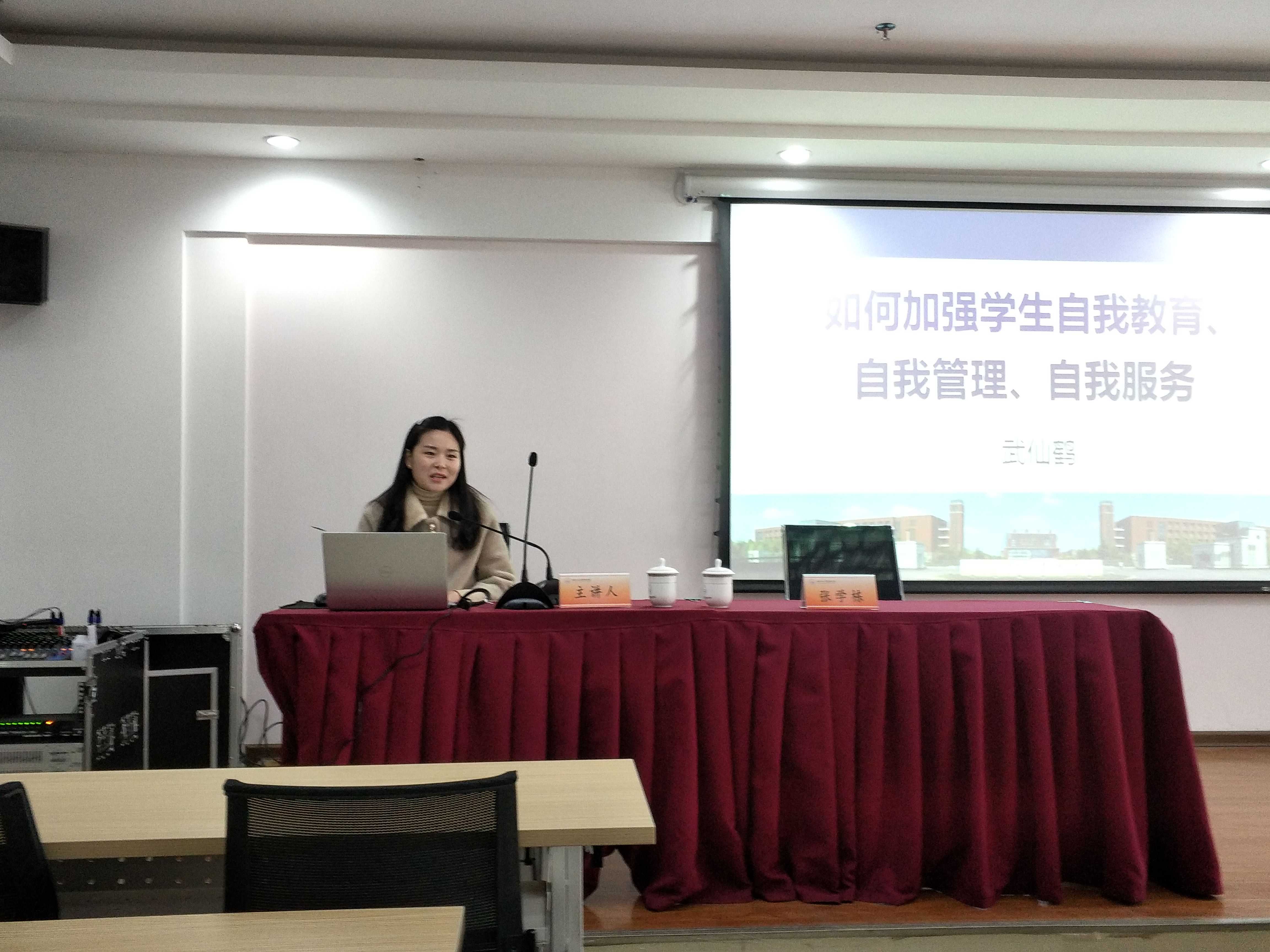 2月18日,我校辅导员系列第六期培训班在明德楼702报告厅举行。培训班邀请外国语学院团委书记郭春燕、商学院团委书记武仙鹤和艺术学院辅导员刘鑫就学生工作做经验分享交流。培训由学工处处长张学栋主持,全体辅导员参加此次培训。