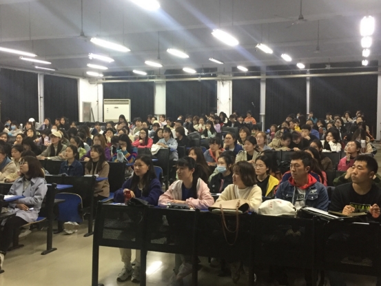 徐老师简单进行了暖场后就开始了主题演讲,涵盖以下四个内容:考研院校的选择;坚定必胜的信心;高效学习方法;即刻出发,不懈努力。学生孜孜不倦的求知欲让徐老师分享了许多考研“干货”。诸如,计划考研的学生一定要加强收集信息的能力,关注研招网,多比较分析,选择一条适合自己的方向,做到跳一跳能够摘苹果;提高学习效率,找到适合自己的方法;坚定必胜的信心,及早进入学习状态,做好当下,着眼考场。会场上学生踊跃提问,徐老师以一个个现实事例回答了同学们的问题。