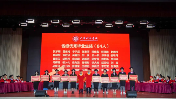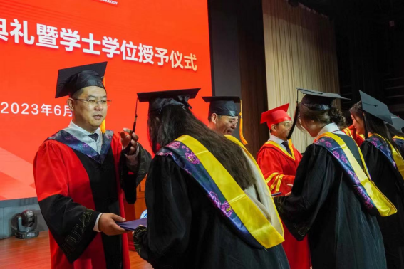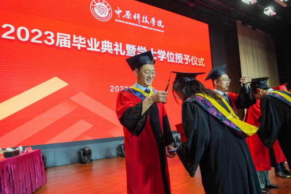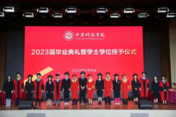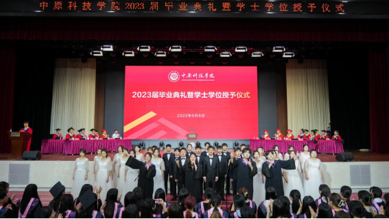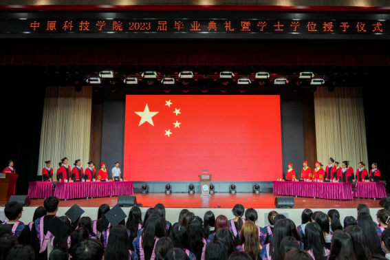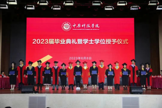 6月8日上午,中原科技学院2023届毕业典礼暨学位授予仪式在郑州校区健行馆举行。