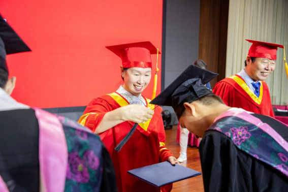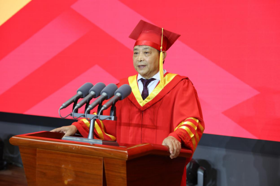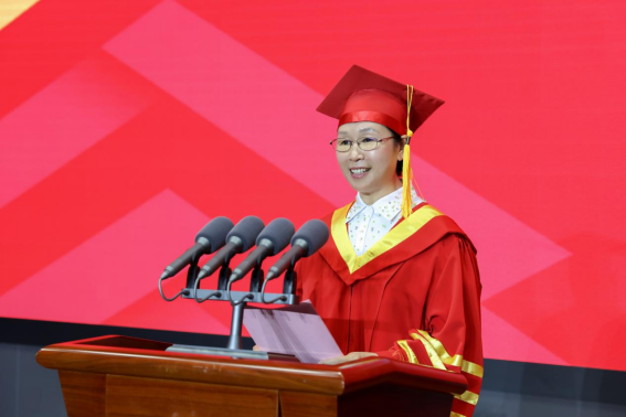 李香枝理事长回忆30年奋斗史,以此勉励同学们找准方向,定好目标,脚踏实地,择一事终一生;人生不可能一帆风顺,经常接受磨练的人才能创造出崭新天地;内心强大才能不怕困难,不畏艰险,越困难越向前;内心强大才能思维有广度,人生有宽度,做人有厚度,做事有高度。最后,她衷心祝愿广大毕业生学子鹏程万里,前程似锦。