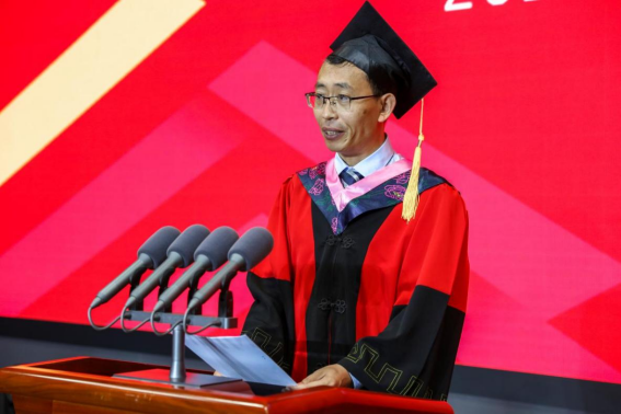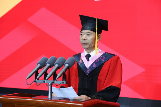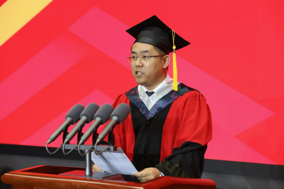 赵健代表学校向圆满完成学业并获得学士学位的同学们表示衷心的祝贺,向辛勤培育和支持学生成长成才的老师们、家长们致以崇高的敬意。同时对毕业生提出殷切希望:饮水思源,懂得感恩;志存高远,勇于担当;勤奋好学,锐意进取,并祝愿同学们筑梦新时代、再启新征程!