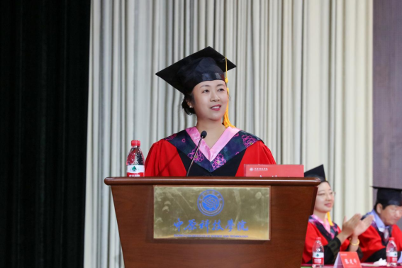 教师代表经管学部李巧玲老师在发言中鼓励毕业生们要脚踏实地,不忘学习;从基层做起,虚心向他人学习,真诚向实践请教;学会做人,学会做事,学会合作,不断地完善自我。