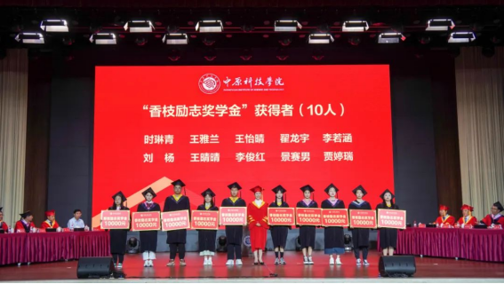 中原科技学院创办人、理事长李香枝为“香枝励志奖学金”获得者颁奖