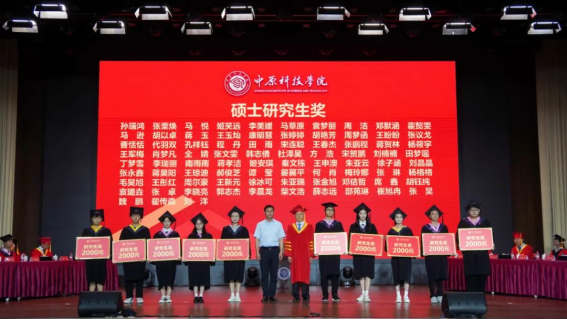 河南省教育厅发展规划处处长宋振和副理事长仉建涛为考取研究生的毕业生代表颁奖
