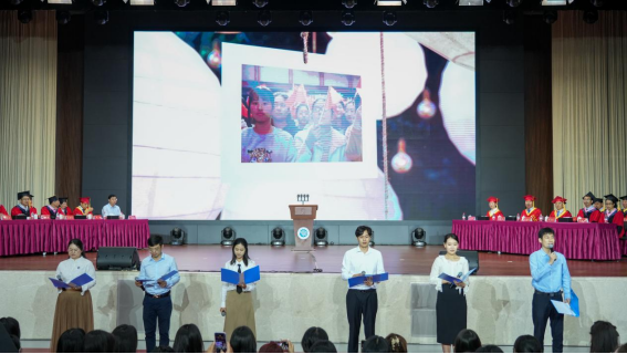 《青春不散、与你同行》,毕业班辅导员用诗歌朗诵表达了对毕业生们的眷恋之情,祝愿毕业生一路生花,前程似锦。