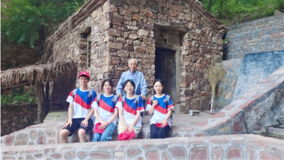 站在青年洞旁,队员们无不被其深深地震撼,只有在亲临现场的时候才能深刻的体会到渠洞的雄伟。在登临青年洞的过程中,我们有幸遇到了一位住在山腰上的八十岁老者,在对老者进行了访问的过程中,老者用他自己的亲身经历和切身感受,向我们讲述了红旗渠修建的故事,是网络上所没有涉及的经历。老爷爷强调“没有共产党就没有新中国。”老者热泪盈眶、激情澎湃地向年轻队员讲述了自己当年修建红旗渠的经历以及目睹几十年来翻天覆地的变化,并主动提出给队员们打上一段快板,望着眼前的老者队员们心中的自豪感油然而生。