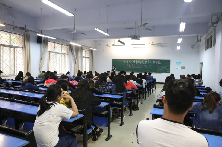 活动现场 周观兵老师讲话 2017年5月3日,我校学工处心理健康教育中心在文质楼109教室进行了朋辈心理辅导员联系16级学生活动启动仪式。心理健康教育中心白红敏老师和教育学院心理教研室主任周观兵老师出席仪式,16级全体心理委员以及14、15级