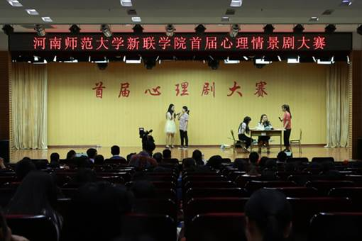 比赛现场段其旺为选手颁奖合影6月6日晚,由河南师范大学新联学院学工处主办,文学与传媒学院承办的首届心理情景剧大赛决赛在报告厅举办。副校长陈江风,党委常务副书记段其旺,学工处处长董永亮和各学院书记及师生共同观看比赛。本次比赛经过层层筛选,共有六支队伍进入