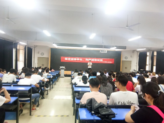 为深入贯彻落实习近平总书记关于教育的重要论述、全国教育大会和河南省教育大会精神,落实立德树人根本任务,进一步增强广大青年学生的诚信意识和责任意识,加大资助育人力度。根据省资助中心相关文件要求,我校认真组织开展大学生资助诚信教育主题活动。班会召开现场同