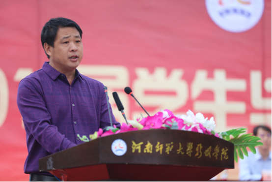 新联学院院长金绪泽教授向圆满完成学业的全体毕业生表示热烈的祝贺,向辛勤养育毕业生成长的父母、悉心教导毕业生成才的老师表示衷心的感谢。他寄语毕业生珍惜韶华,怀揣理想;珍惜责任,有所担当;珍惜拥有,永远幸福。