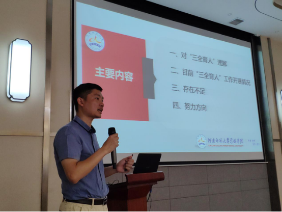 为贯彻三全育人的理念,把思想政治工作贯穿教育教学全过程,把思想价值引领贯穿教育教学全过程和各环节的号召。近日,我校召开了2019年三全育人主题教育培训,校党委常务副书记段其旺、学工处处长张学栋、各学院学生工作负责人、团委负责人、辅导员代表参加了本次培训。