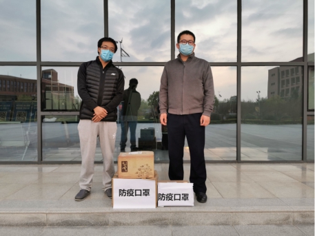艺术学院党总支书记陈诚和张超老师接收抗疫物资