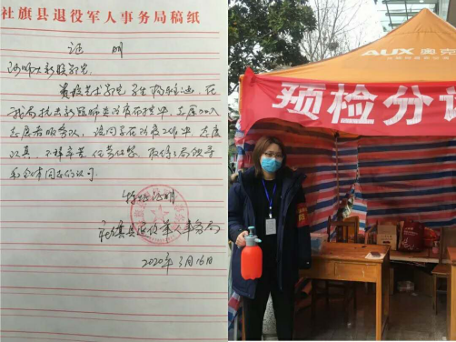 疫情期间,2018级学生杨雅涵“第一时间”递交申请,主动要求前往“抗疫”第一线。经组织审批和短暂培训,迅速进入“战线”,在县退役军人事务局防疫岗位上积极工作。在防疫执勤卡点上,一丝不苟地排查人员车辆、测量群众体温、汇总各项信息、慰问抗疫一线的军人家属和退役军人。通过一个多月的努力,踏实认真的工作态度和责任的心受到了分包疫情防控单位的称赞。
