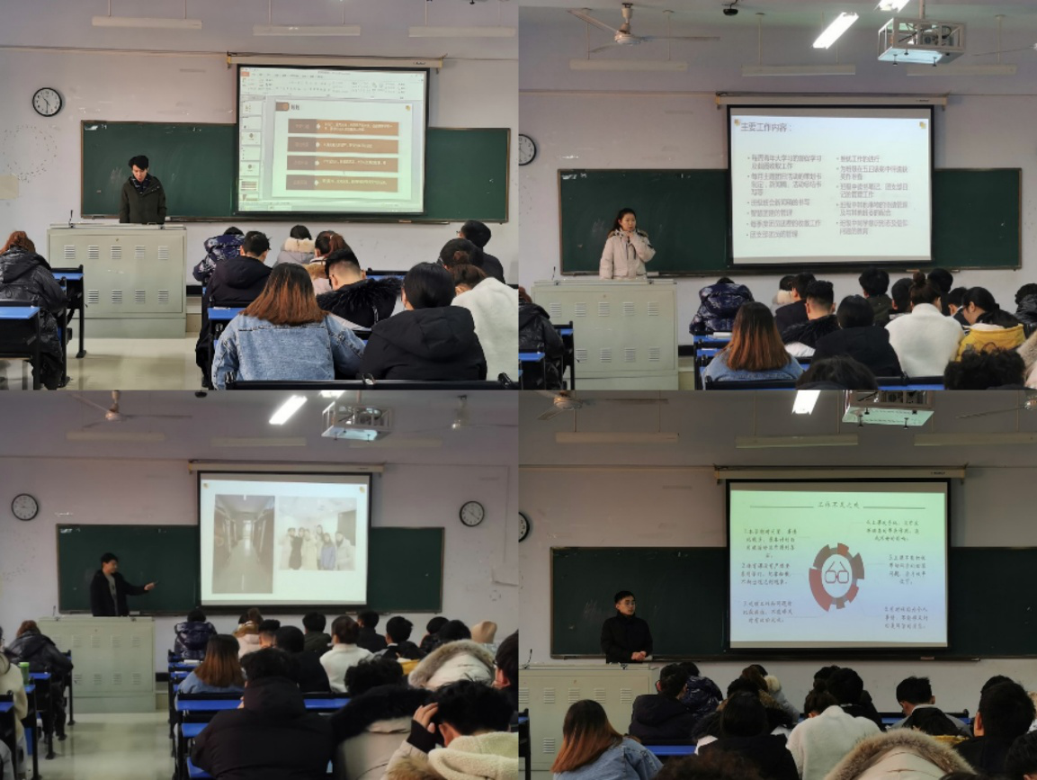 2020年12月16日上午10:00,2019级国际经济与贸易专业全体学生于文质楼409教室召开班委述职报告会,此次大会由国际经济与贸易1班班长李亚龙主持,国际经济与贸易专业导师李春艳和辅导员杜静静作为特邀嘉宾参加会议。