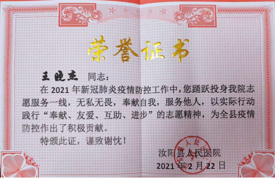 “他们穿梭奔走的身影是一道最美的风景线,这种英勇无畏、无私奉献的精神将温暖更多人砥砺前行,鼓舞和激励更多人众志成城、战胜疫情!”,近日,我校收到一封来自洛阳市汝阳县人民医院的感谢信,对我校小学教育专业学生王晓杰志愿参与当地疫情防控工作表示感谢。在得知王晓杰的事迹之后,学生工作部对王晓杰进行了简单的采访。