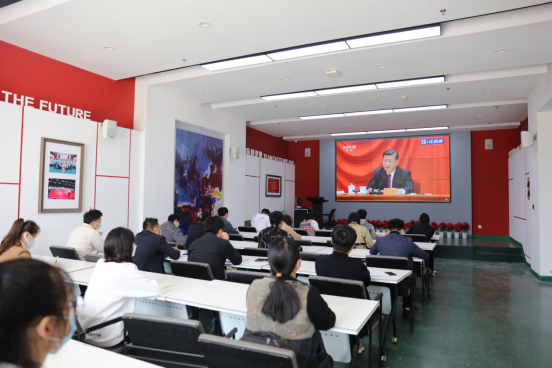中原科技学院校长赵健,党委书记杜建松,党委副书记、纪委书记左丽娟及其他党委委员、各学院党务工作负责人、各基层团总支负责人、师生团员代表、学生干部代表分别组织观看庆祝大会。习近平总书记在大会上的讲话振奋人心,凝聚力量,师生掀起讨论学习热潮。