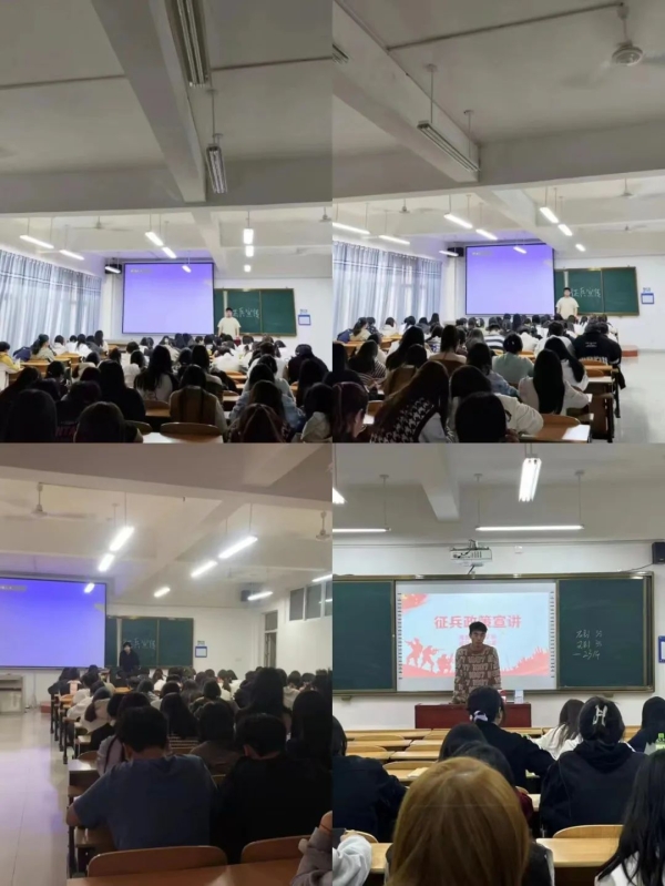 携笔从戎勇担强军重任,绿色军营书写绚烂青春。为推进强军事业,激发学生投身军营、献身国防的热情,充分调动报名参军积极性,做好2024年大学生征兵宣传工作,扩大征兵宣传的影响力,鼓励在校生应征入伍服务国防建设,我校开展“征兵宣讲”主题班会。